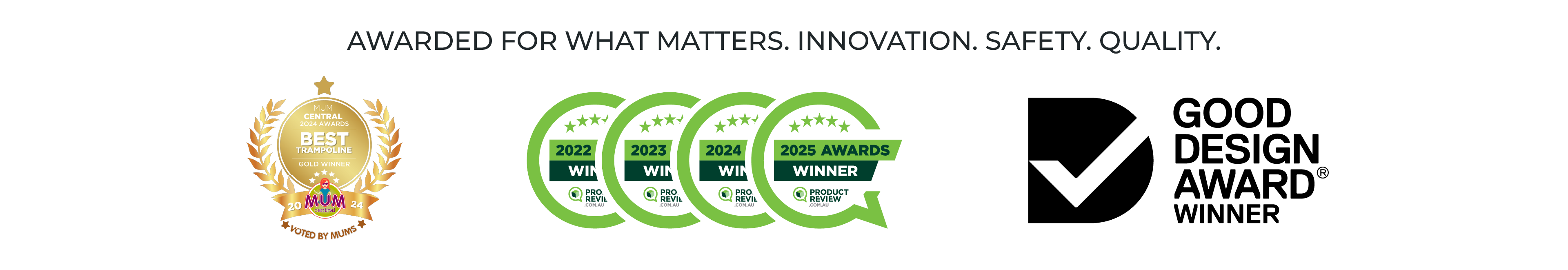 Our commitment to safety/quality is backed up by Springfree being the most-awarded trampoline brand on the market.